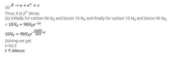 (b) The half-life of the decay scheme is $20.3$ minutes. How much time will elapse before a mixture of $90 \%$ carbon-11 and $10 \%$ boron-11 (by the number of atoms) converts itself into a mixture of $10 \%$ carbon- 11 and $90 \%$ boron- 11 ?