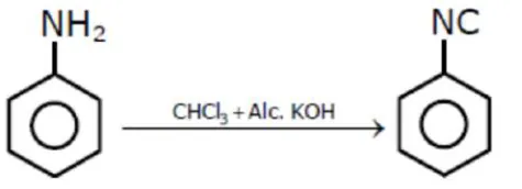 Carbylamine test is used to detect the presence of primary amino group in an organic compound. Which of the following compound is formed when this test is performed with aniline?