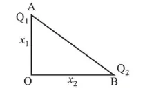 $\Rightarrow \frac{Q_{2} x_{1}^{2}}{Q_{1} x_{2}^{2}}=\frac{x_{1}}{x_{2}} \Rightarrow \frac{Q_{2}}{Q_{1}}=\frac{x_{2}}{x_{1}}$ or, $\frac{Q_{1}}{Q_{2}}=\frac{x_{1}}{x_{2}}$