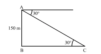 $\therefore \mathrm{BC}=150 \sqrt{3} \mathrm{~m}$