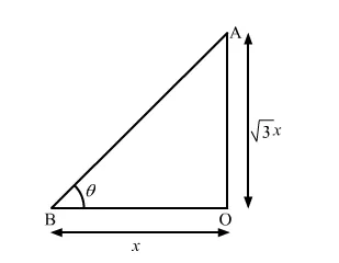 $\Rightarrow \tan \theta=\frac{x \sqrt{3}}{x}$