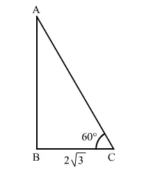 $\mathrm{BC}=2 \sqrt{3} \mathrm{~m}$ and $\angle \mathrm{ACB}=60^{\circ}$