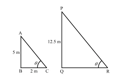 $\mathrm{AB}=5 \mathrm{~m}, \mathrm{BC}=2 \mathrm{~m}, \mathrm{PQ}=12.5 \mathrm{~m}$