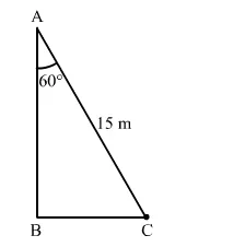 A ladder 15 m long makes an angle of 60° with the wall. Find the height of the point, where the ladder touches the wall.