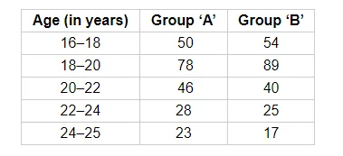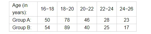Thus, the modal age of group A is 18.93 years whereas the modal age of group B is 18.83 years.