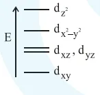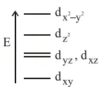 Complete removal of both the axial ligands (along the z-axis) from an octahedral complex leads to which of the following splitting patterns? (relative orbital energies not on scale).