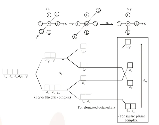 If both ligands present along $z$-axis removed from octachedral field and converted into square planar field, then