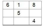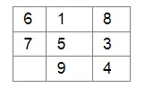 complete the magic square given below, so that the sum of the numbers in each row or in each column or along each diagonal is 15.
