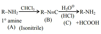 Question: Compound $\mathrm{A}$ is converted to $\mathrm{B}$ on reaction with $\mathrm{CHCl}_{3}$ and $\mathrm{KOH}$. The compound $\mathrm{B}$ is toxic and can be decomposed by C. A, B and C respectively are :