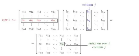 Where $c_{i j}=a_{i 1} b_{1 j}+a_{i 2} b_{2 j}+a_{i 3} b_{3 j}+\ldots \ldots \ldots \ldots \ldots . . a_{i n} b_{n j}$