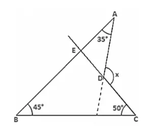 ∠BEC = 180° − 45° − 50° = 85° [Sum of all angles of a triangle]