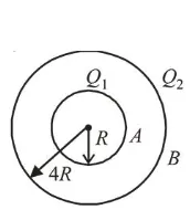(1) We have given two metallic hollow spheres of radii $R$ and $4 R$ having charges $Q_{1}$ and $Q_{2}$ respectively.
