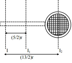 $I=\left[I_{1}+M\left(\frac{5}{2} r\right)^{2}\right]+\left[I_{2}+M\left(\frac{13 r}{2}\right)^{2}\right]$