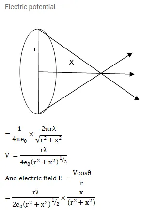 $\mathrm{E}=\frac{\mathrm{r} \lambda \mathrm{x}}{2 \mathrm{e}_{0}\left(\mathrm{r}^{2}+\mathrm{x}^{2}\right)^{3 / 2}}$