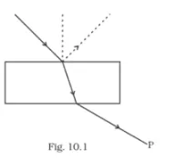 A polaroid is placed in the path of the emergent ray at point P and rotated about an axis passing through the centre and perpendicular to the plane of the polaroid