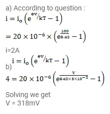 (a) Find the current through the diode when a voltage of $300 \mathrm{mV}$ is applied across it in forward bias.