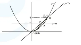 $\Rightarrow \int_{0}^{4}\left(\sqrt{y}-\frac{y}{2}\right) d y=2 \int_{0}^{a}\left(\sqrt{y}-\frac{y}{2}\right) \cdot d y$