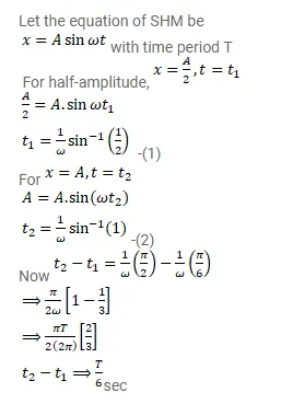 Consider a simple harmonic motion of time period $T$. Calculate the time taken for the displacement to change value from half the amplitude to the amplitude.