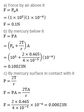Atmospheric pressure $=1.0 \times 10^{6} \mathrm{~Pa}$ and surface tension of mercury $=0.465 \mathrm{~N} / \mathrm{m}$. Neglect the effect of gravity. Assume all numbers to be exact.