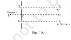 Consider a two-slit interference arrangements such that the distance of the screen from the slits is half the distance between the slits. Obtain the value of D in terms of λ such that the first minima on the screen falls at a distance D from the centre O.