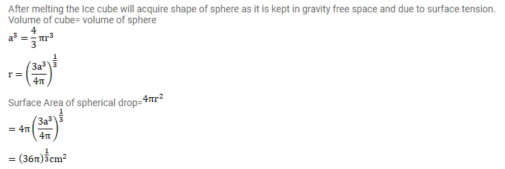Consider an ice cube of edge $1.0 \mathrm{~cm}$ kept in a gravity free hall. Find the surface area of the water when the ice melts. Neglect the difference in densities of ice and water.