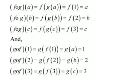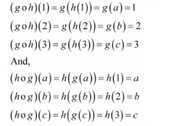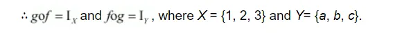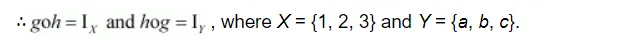 $\therefore f^{-1}:\{a, b, c\} \rightarrow\{1,2,3\}$ is given by,