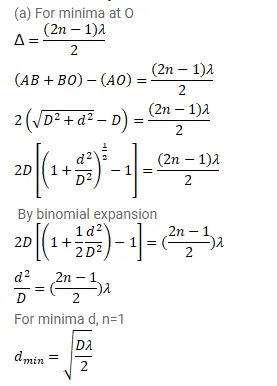 (a) Find the minimum value of $d$ so that there is a dark fringe at $O$.