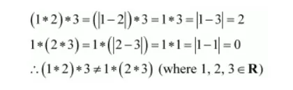 $\therefore 1 \circ 2 \neq 2 \circ 1$ (where $1.2 \in \mathbf{R}$ )