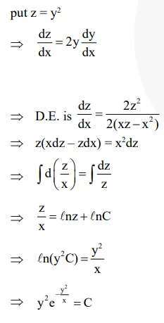 Statement 1 : The substitution $\mathrm{z}=\mathrm{y}^{2}$ transforms the above equation into a first order homogenous differential equation.