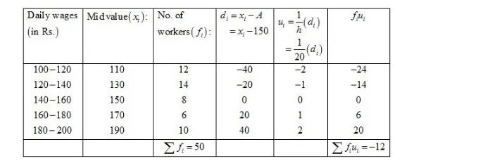 Now, we have $N=\sum f_{i}=50, \sum f_{i} u_{i}=-12, h=20$ and $A=150$.