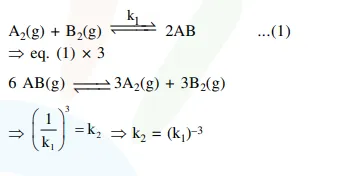 $6 \mathrm{AB}(\mathrm{g}) \stackrel{\mathrm{K}_{2}}{\rightleftharpoons} 3 \mathrm{~A}_{2}(\mathrm{~g})+3 \mathrm{~B}_{2}(\mathrm{~g}) \ldots . .(2)$