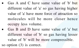 a and $b$ are vander waals constant. The correct statement about the gases is :