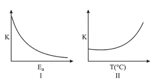 So, as $\mathrm{E}_{\mathrm{a}}$ increases, $e^{-E_{a} / R T}$ decreases, $K$ decreases