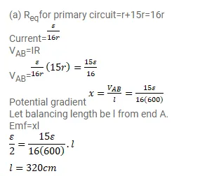 (b) If the jockey touches the wire at a distance of $560 \mathrm{~cm}$ from A, what will be the current in the galvanometer?