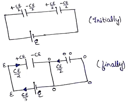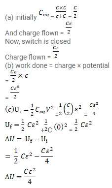 (a) Find the charge flown through the battery when the switch $\mathrm{S}$ is closed,