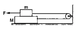 Consider the situation shown in figure. Suppose a small electric field Eexists in the space in the vertically upward direction and the upper block carries a positive charge $\mathrm{Q}$ on its top surface. The friction coefficient between the two blocks is $g$ but the floor is smooth. What maximum horizontal force Fcan be applied without disturbing the equilibrium?