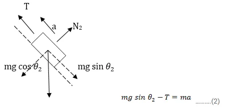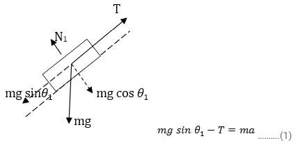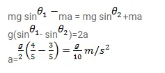 Consider the situation shown in figure. All the surfaces are frictionless and the string and the pulley are light. Find the magnitude of the acceleration of the two blocks.