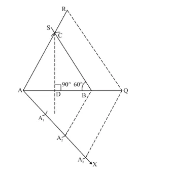 Step: V-Below $A B$, makes an acute angle $\angle B A X=60^{\circ}$.
