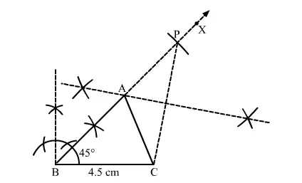 Construct a ∆ABC in which BC = 4.5 cm, ∠B = 45° and AB + AC = 8 cm. Justify your construction.