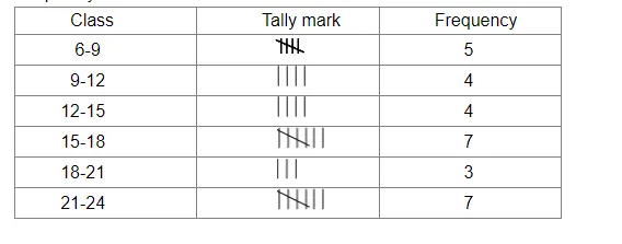 Therefore, classes of the same size covering the given data are 6-9, 9-12, 12-15, 15-18, 18-21 and 21-24.