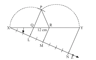 8. With R as the centre and radius RY, draw an arc, cutting the previously drawn arc at P.