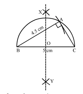 4. With B as the centre and radius equal to 4.5 cm, draw an arc cutting the semicircle at A.