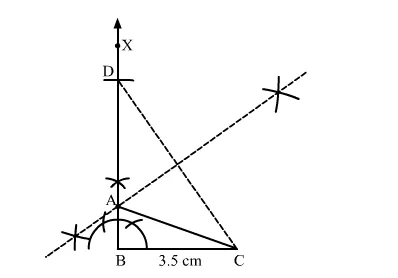 3. With B as centre and 5.5 cm radius cut an arc on BX and name it as D.