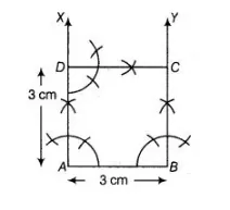 To construct a square of side 3 cm, use the following steps.