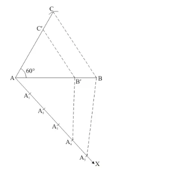 Step: V-Below $A B$, makes an acute angle $\angle B A X=60^{\circ}$.