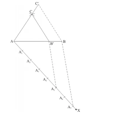 So, we draw a line $A_{3} B^{\prime}$ on $A X$ from point $A_{7}$ which is $A_{7} B^{\prime} \| A_{5} B$, and meeting $A B$ at $B$ '.