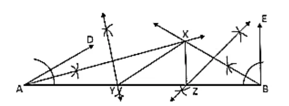 4. Draw the perpendicular bisector of XA and XB which intersect AB at Y and Z respectively