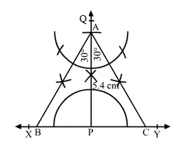 4. From $P$, set off $P A=5.4 \mathrm{~cm}$, cutting $P Q$ at $A$.