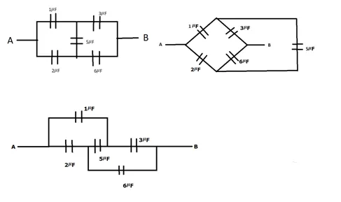 $C_{e q}=\frac{1 \times 3}{1+3}+\frac{2 \times 6}{2+6}=2.25 \mu F$