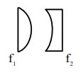 $\frac{1}{\mathrm{f}_{1}}+\frac{1}{\mathrm{f}_{2}}=\frac{1}{\mathrm{f}_{\mathrm{cq}}}=\frac{\left(\mu_{1}-1\right)-\left(\mu_{2}-1\right)}{\mathrm{R}}$